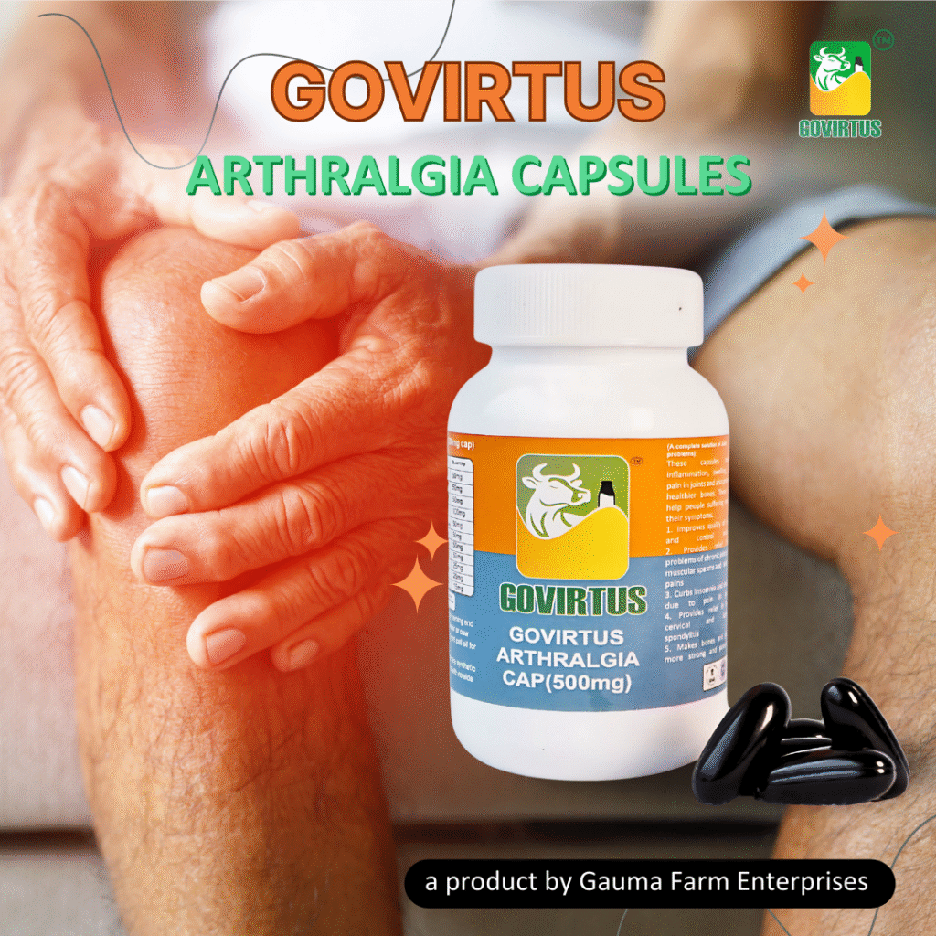 GOVIRTUS Arthralgia Cap is a powerful Ayurvedic formulation designed to reduce inflammation, swelling, and pain in joints while strengthening bones and improving mobility. Enriched with natural herbs, it provides long-lasting relief from chronic joint conditions and supports overall musculoskeletal health.