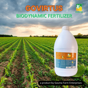 Govirtus Biodynamic Fertilizer is a natural and eco-friendly plant growth solution prepared from Badri cow dung, cow urine, vegetable and fruit waste, jaggery, curd, and pulse husk, fermented with culture for 3–4 weeks. This process creates a nutrient-dense, microbe-rich fertilizer that improves soil fertility, boosts plant health, and promotes sustainable farming.